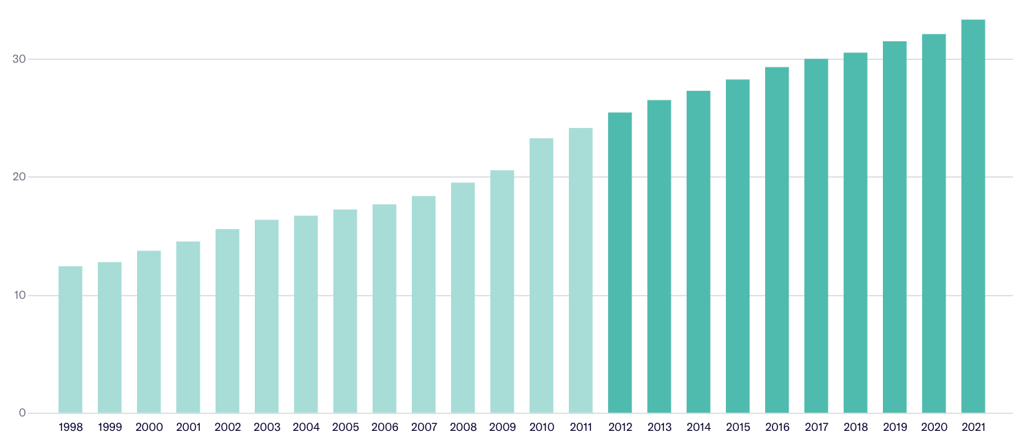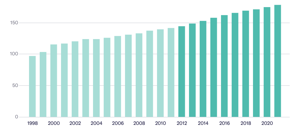 Die Anzahl der Spitalbetriebe ist nur schwach gesunken. Tatsächlich nahm sie vor der Gesetzesrevision stärker ab als danach: In den zehn Jahren davor ist sie um 65 Betriebe gesunken. Seit 2012 betrug der Rückgang mit 22 Betrieben nur rund einen Drittel davon.