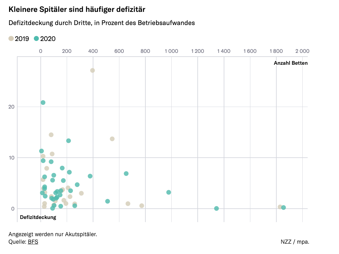 Dabei benötigen vor allem kleine Spitäler Defizitdeckung durch Dritte, meist handelt es sich dabei um die öffentliche Hand.